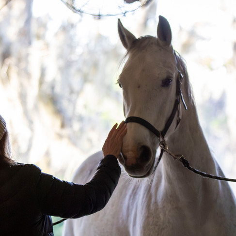 Horses prefer a stronger touch. To reach out to them with fingertips feels like a bug landing on them. To scratch their withers, or chest, or rump feels like another horse - which they like. We also teach all of our students these little details.